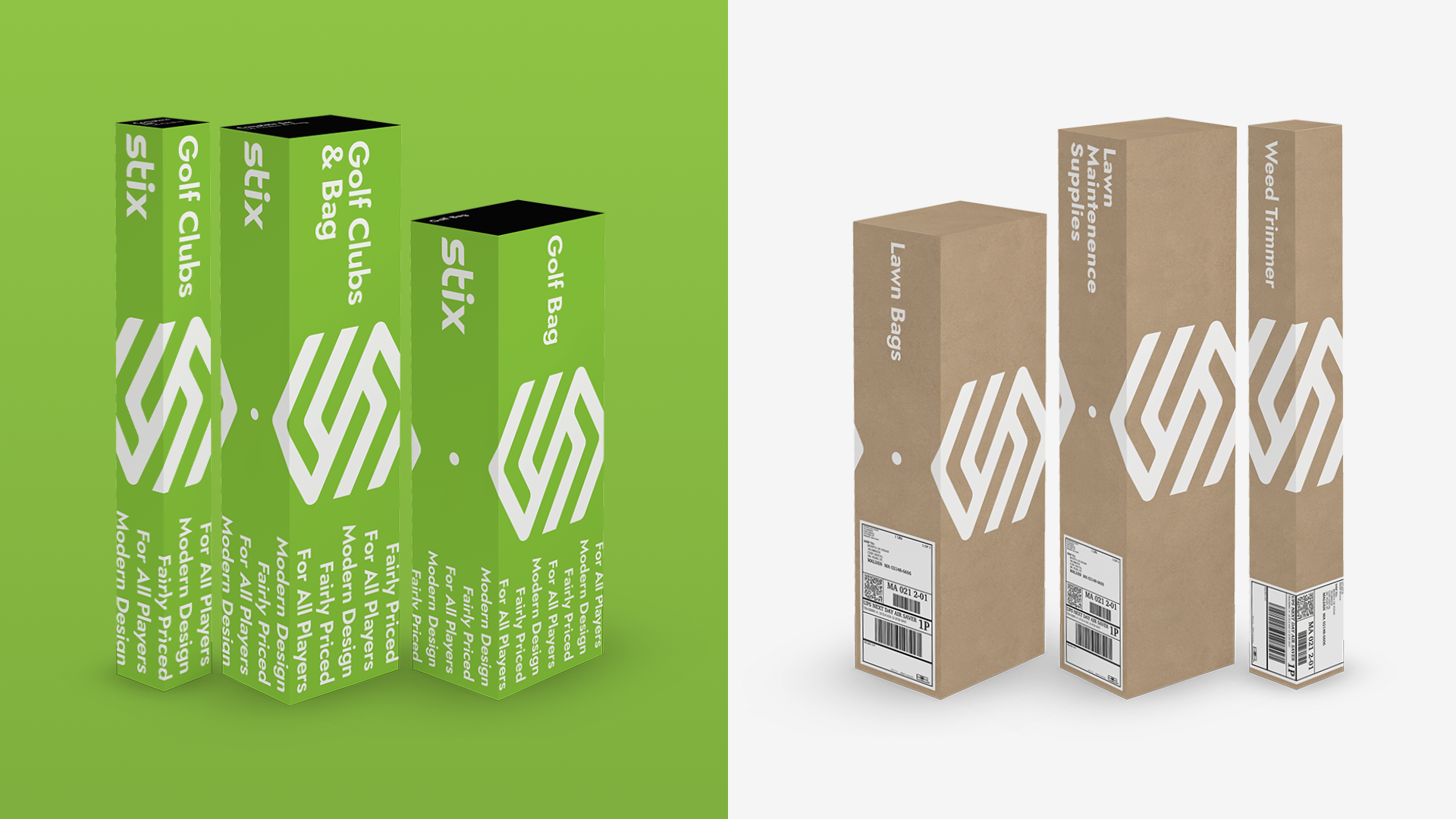 Direct-to-Consumer Packaging / For the D2C packaging, an eye-catching green shipper would excite the golfer ready to hit the greens. An anti-theft option was offered to disguise the contents of the package as uninteresting lawn supplies.